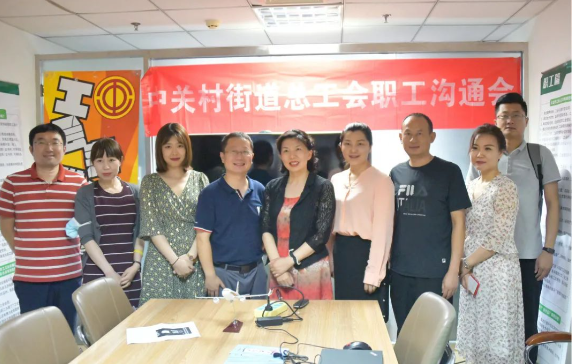 2021年7月27日下午, 市總工會基層建設部朱京萍副部長、王銳、邵宇、孟揚等領導來到亞衛通公司與亞衛通工會委員會一起進行了座談,中關村街道總工會田甜副主席、王璐洋等領導一起陪同出席了座談會。
